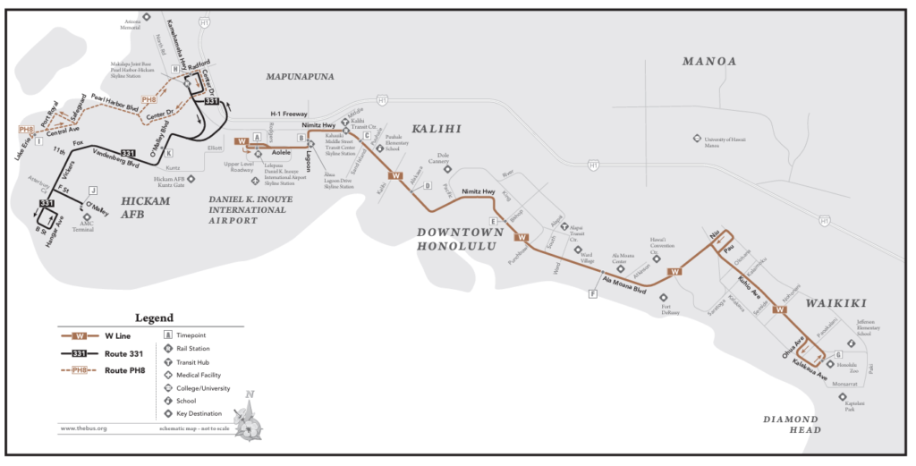 バス乗り場と時間の詳細は➯https://www.thebus.org/Route/Timetables/WLine.pdf