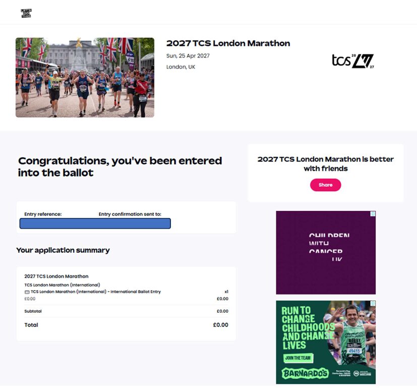 ということで、ロンドンマラソン2027抽選エントリー応募、登録の流れご紹介でした。