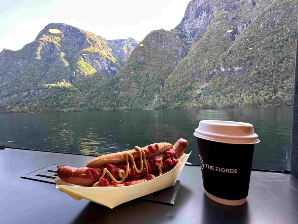 ホットドック79NOK(1,185円)とコーヒー45NOK(675円)でお昼ごはん。