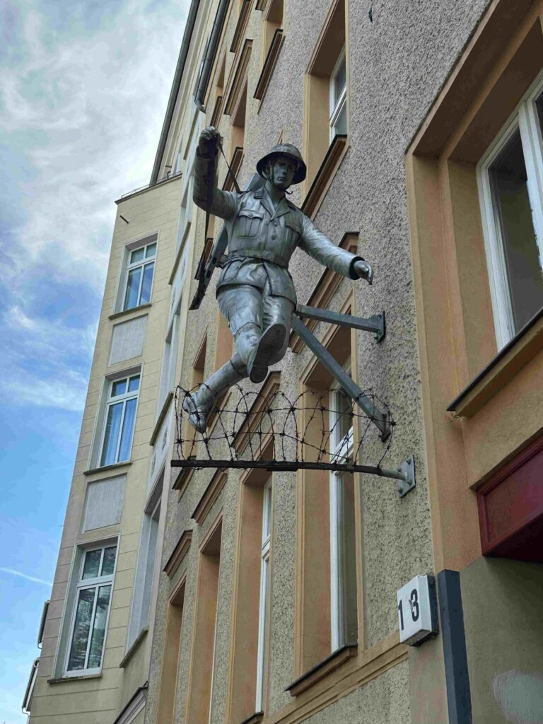 有刺鉄線を越えて西ベルリンに脱走したシューマンの写真。