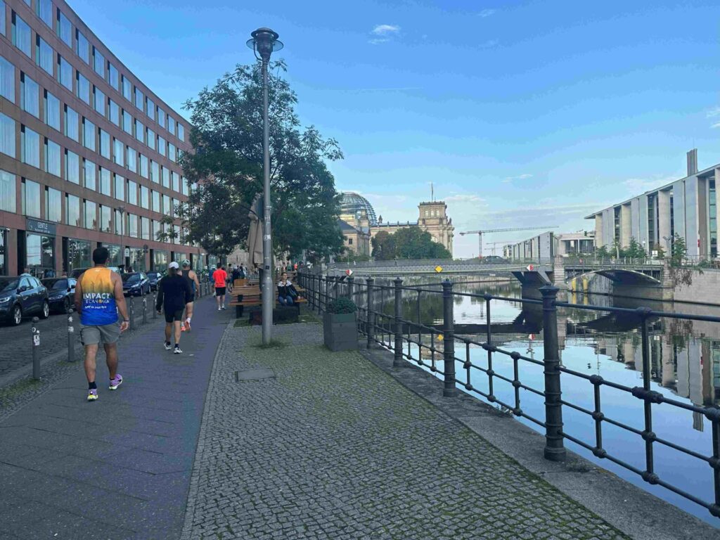 マラソン当日、ホテルからシュプレー川沿い歩いて会場入り。