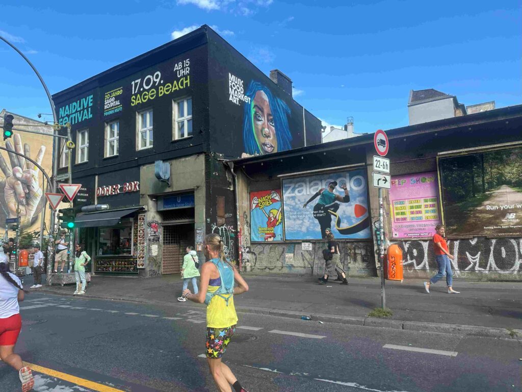 11kmに、「テレビ塔」。13km手前でシュプレー川を渡るとKreuzberg(クロイツベルグ地区)。