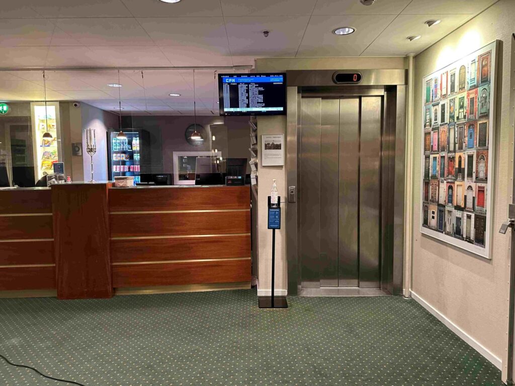 玄関に入った先に、レセプションとエレベータ。