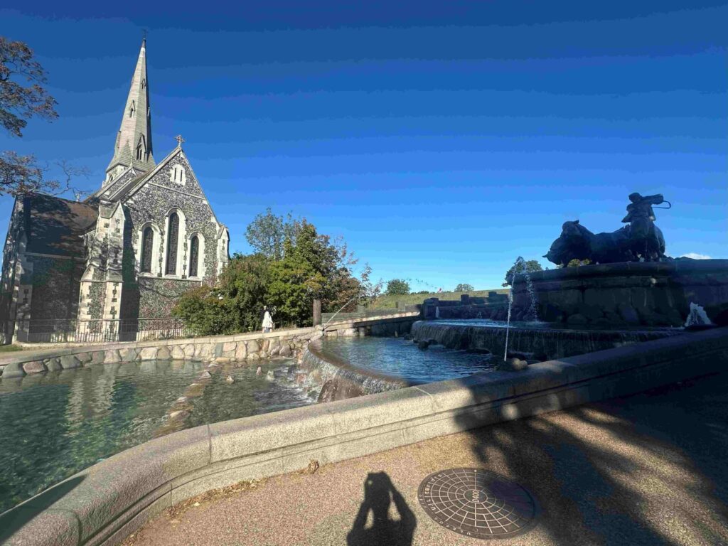 北欧の神話の女神「ゲフィオン」の噴水と19世紀ネオゴシック様式教会のコラボ。✨