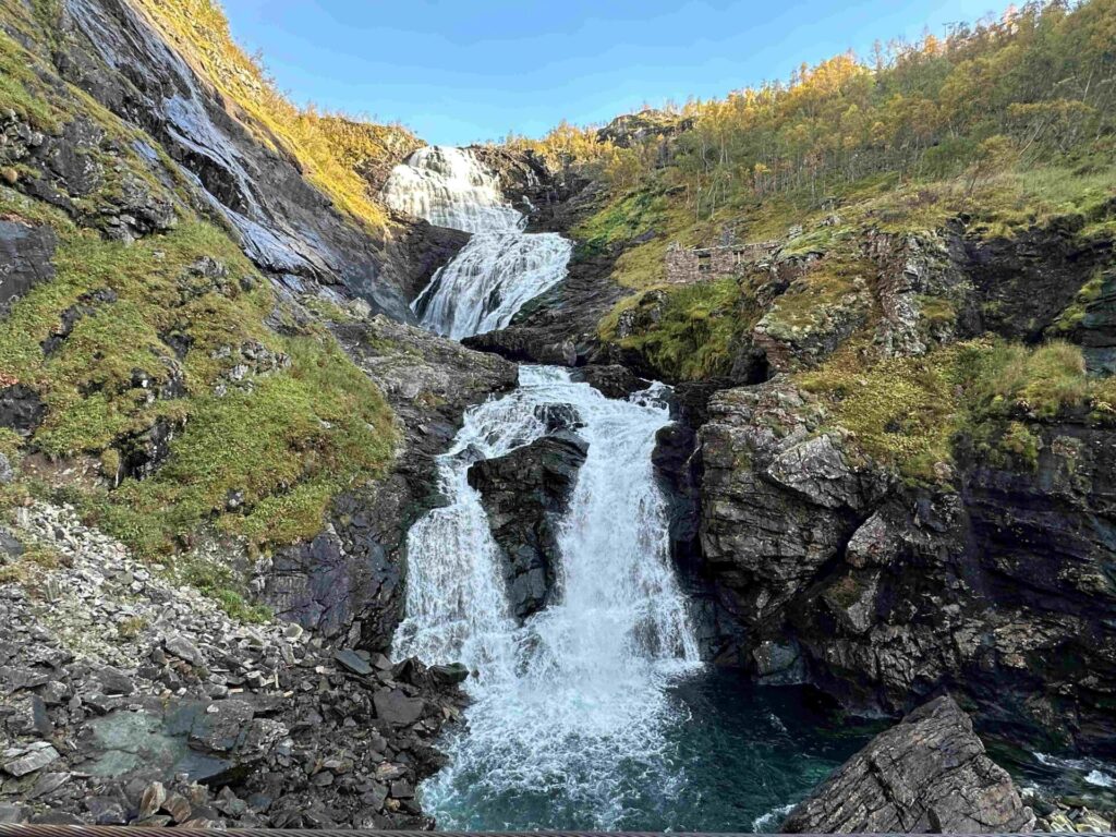・乗車して35分、ショースの滝(Kjosfossen)で約5分停車。