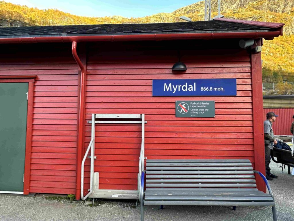 最後の乗り物はベルゲン鉄道、ミュルダール駅での待ち時間は30分。