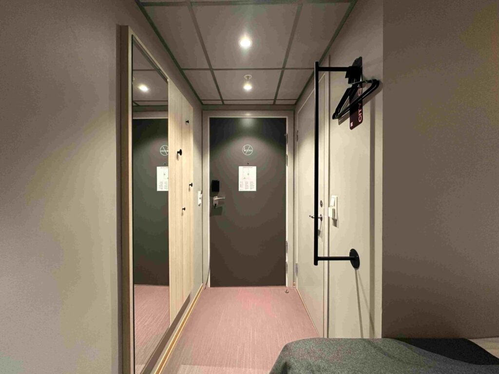 今回のお部屋は4階、入ってすぐ姿見とハンガーラック。
