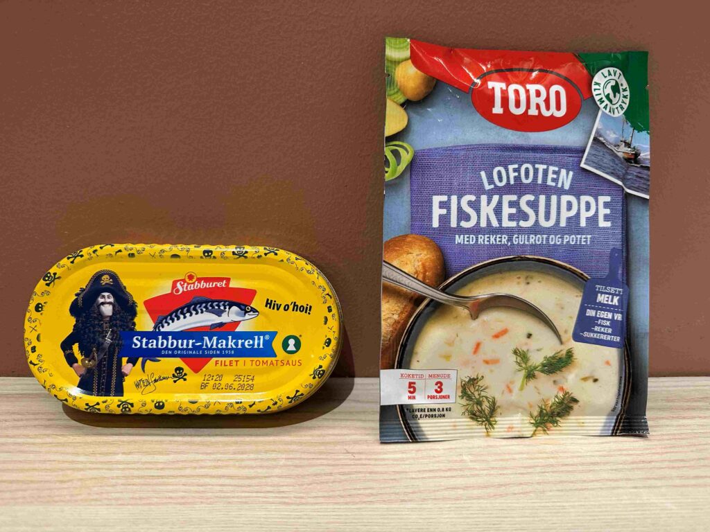 シャケの缶詰:30.5NOK(488円)、TOROスープの素:27.5NOK(440円)。
