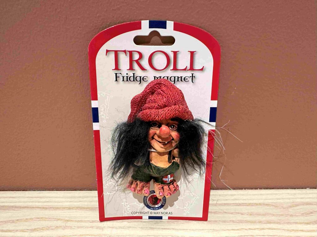 ノルウェーの妖精トロールのマグネット、99NOK(1584円)でお買い上げ。