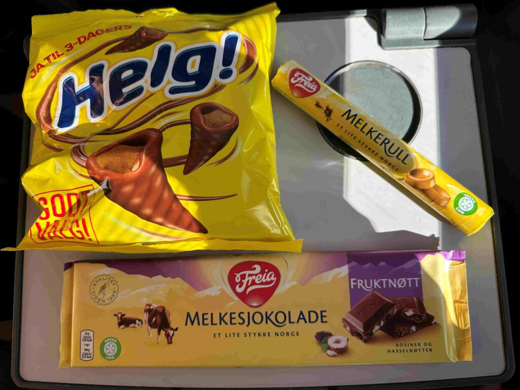 SMASHI(チョココーン):55.9NOK(895円)、FREIA(飴):34.9NOK(559円)、FREIA(チョコ):38.9NOK(623円)。