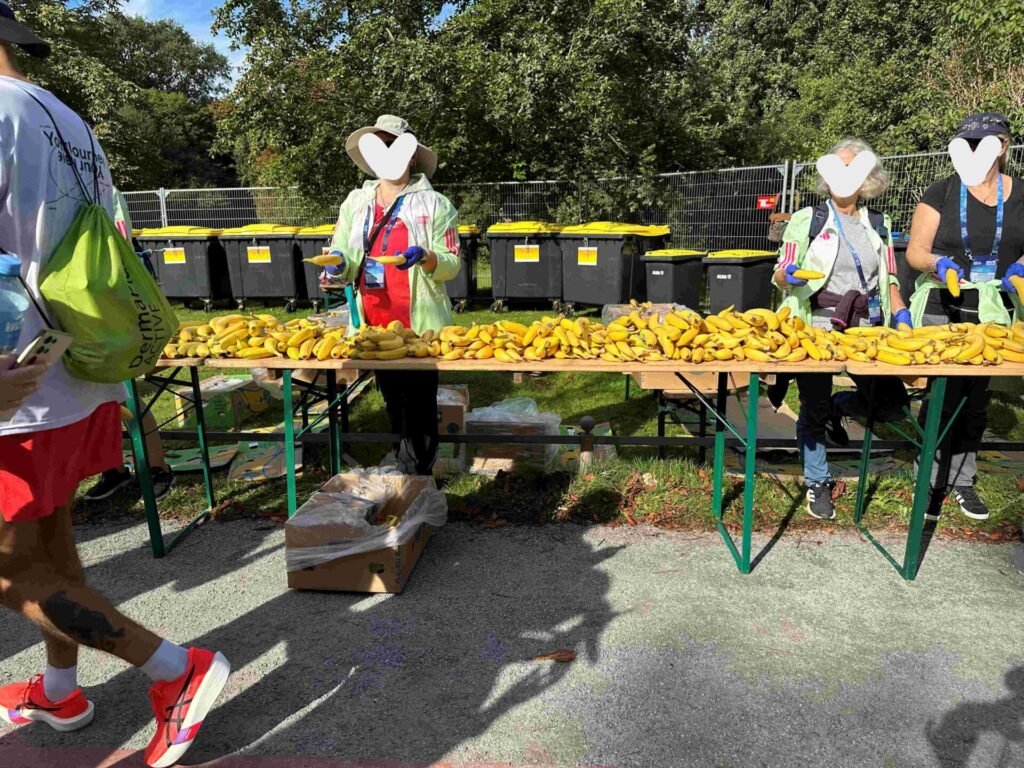 マラソン定番、バナナの配給。🍌