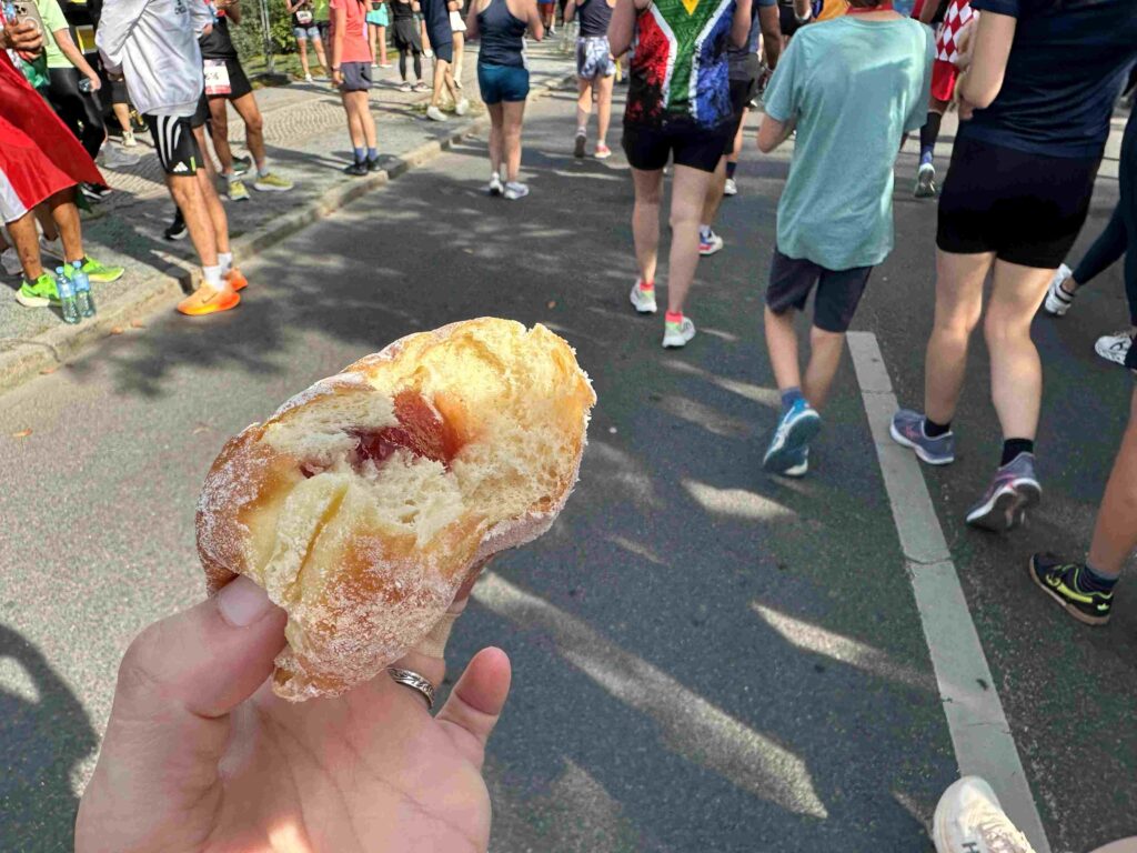 | その他の情報 | ・エントリーは9月中旬頃まで受付(先着順)。 ・ゼッケンは金曜日までにEXPOでピックアップ。 ・参加年齢12歳以上、家族で参加にもオススメ♪ ・スタートエリアでのセキュリティチェックなし。 ・スタートブロック入場のゼッケンチェックなし。 ・トイレは後方ブロックが空いている。 ・スタートからゴールまで歩いてゴールもOK! ・制限時間越えても大丈夫(メダルもらえる)。 ・預け荷物場所なし。 ・ゴール後にもらう品々を入れにビニール袋があると便利。 ・ベルリーナ食べるのにウェットティッシュあると便利。 ・2025年の気温は17℃(ウィンドブレーカーあるといい)。 |