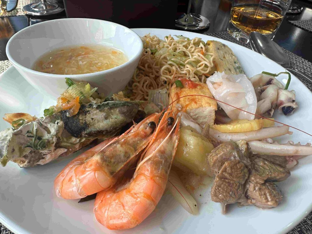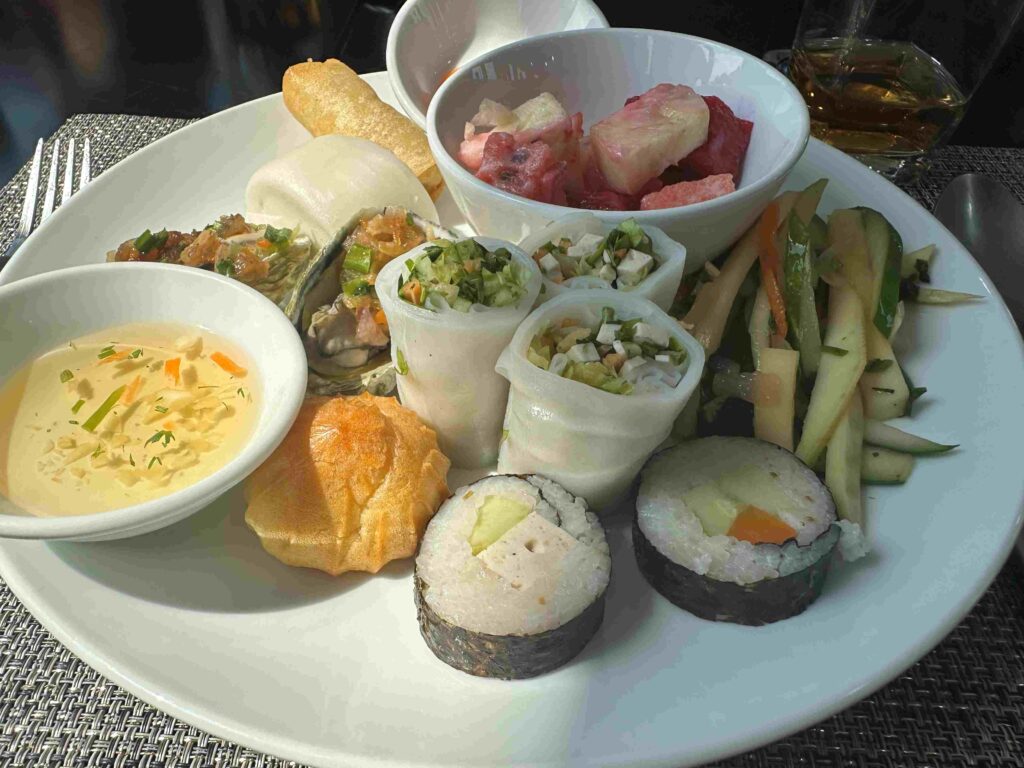 出発前にビュッフェスタート、いろいろ盛りつけ。🎉