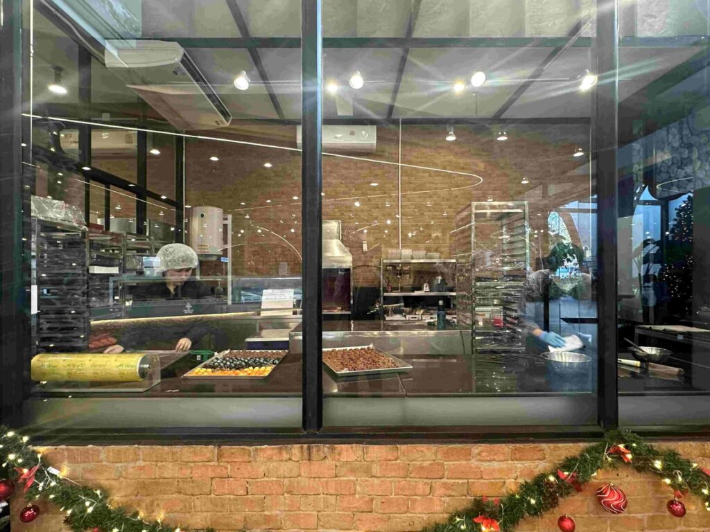 ショーケースに、一粒チョコが整列。