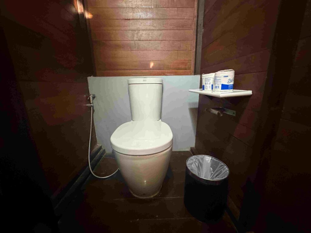 使用済みトイレットペーハーはゴミ箱へ。