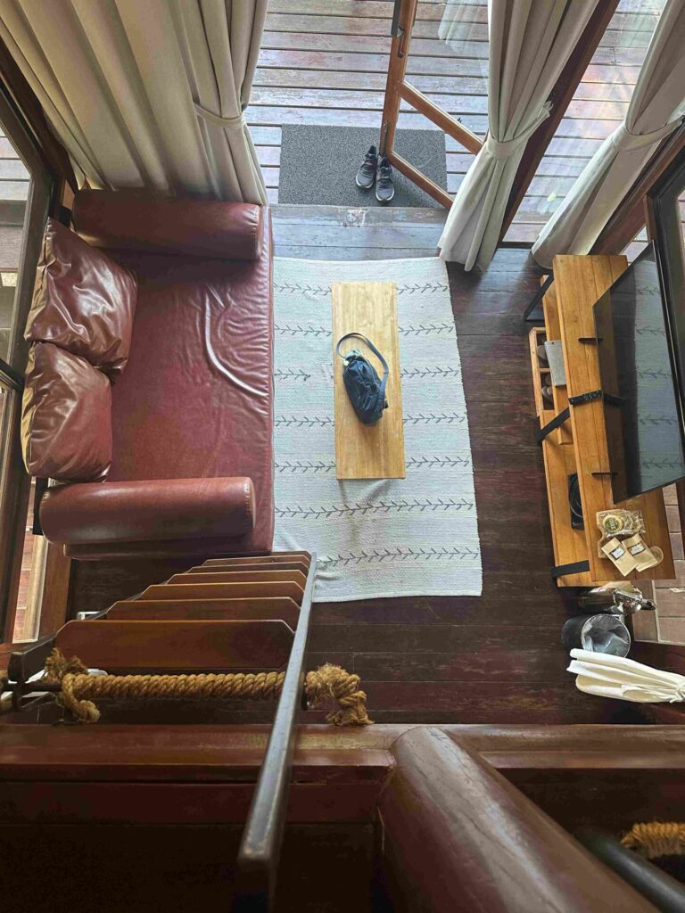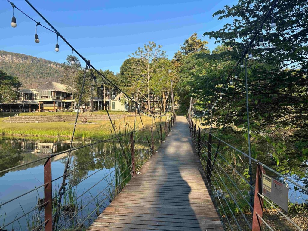 ツリーハウスから徒歩でロビーは吊橋渡ってすぐ。