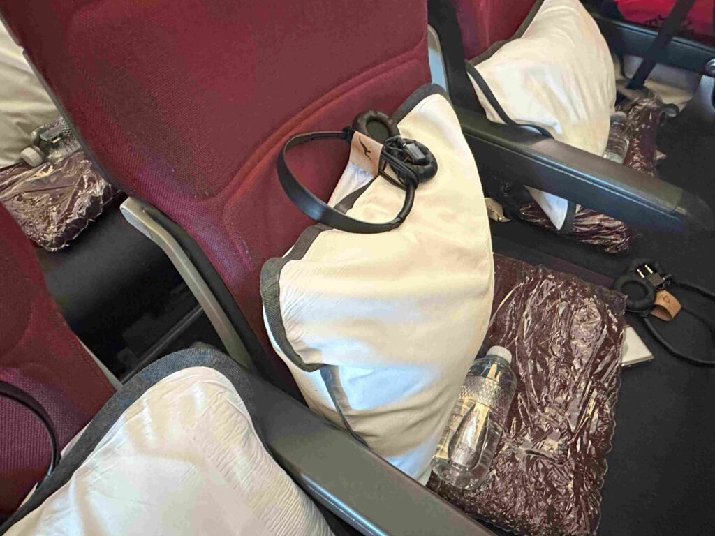 ・アメニティーは、ブランケット、ピロー、ヘッドホン、水。