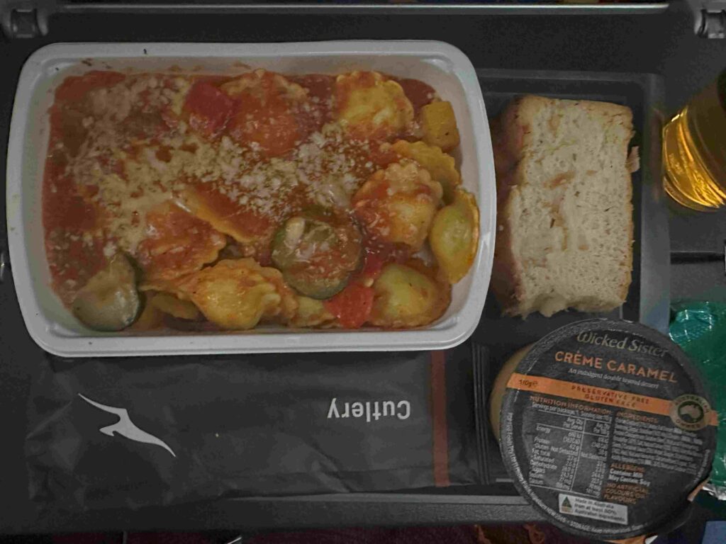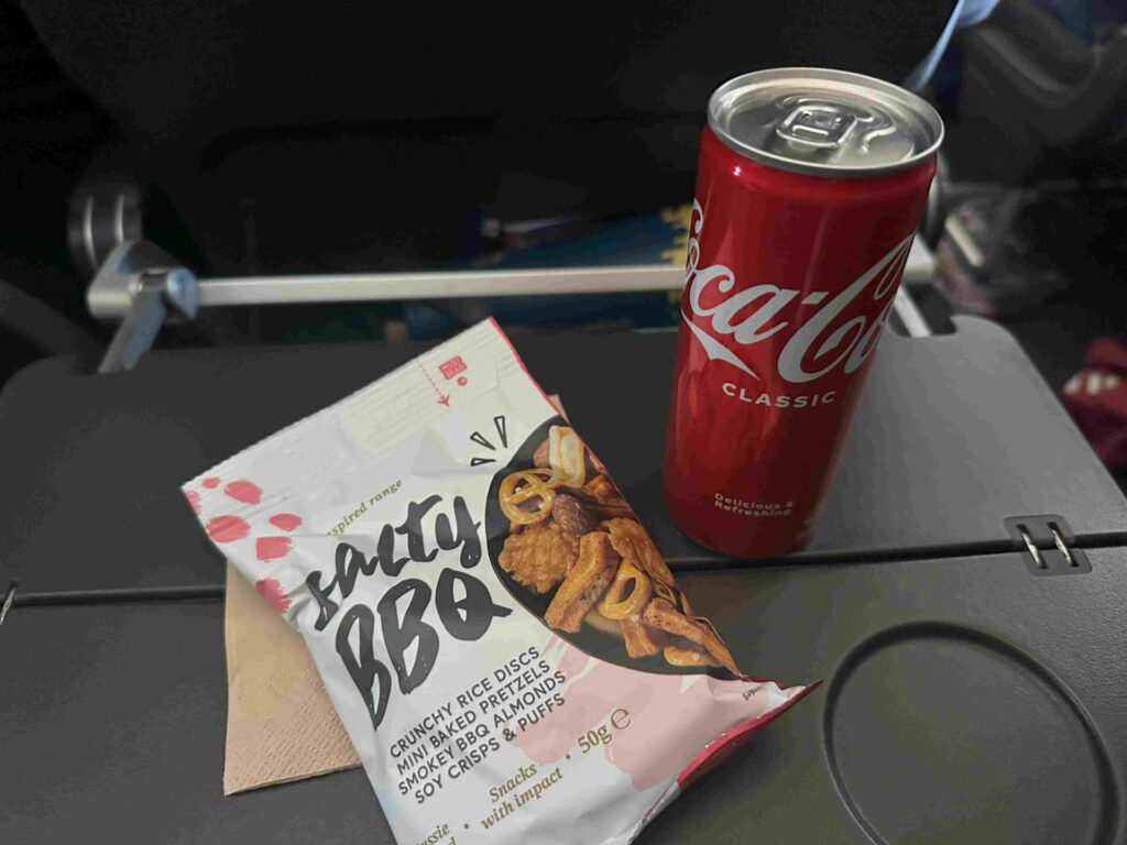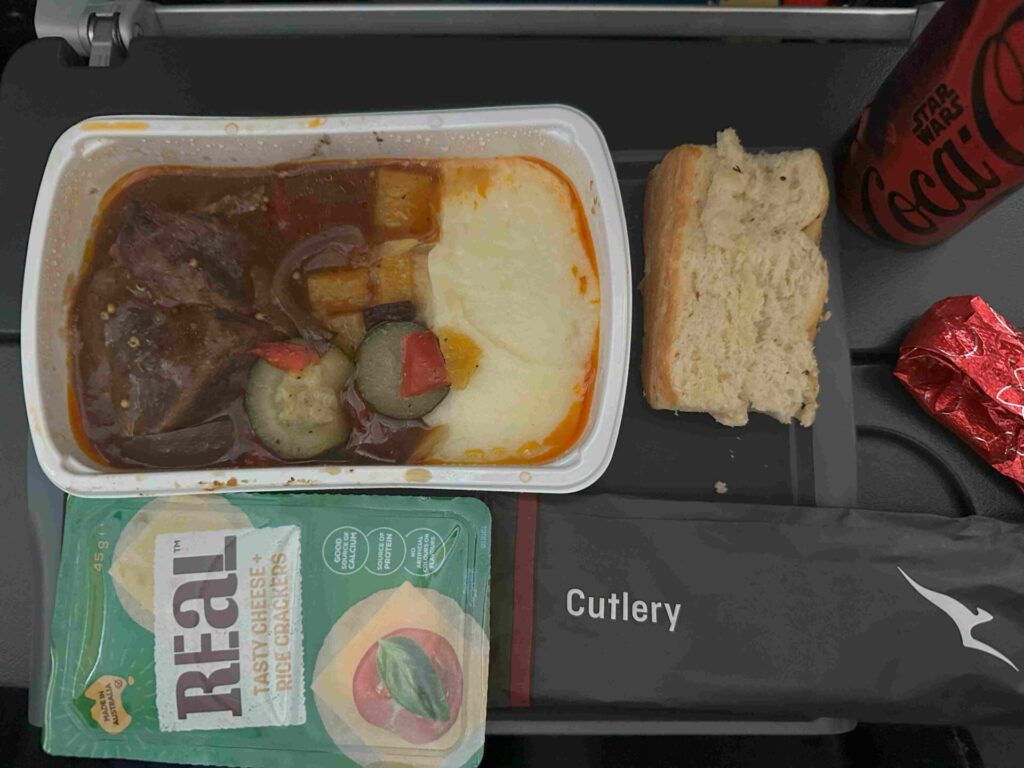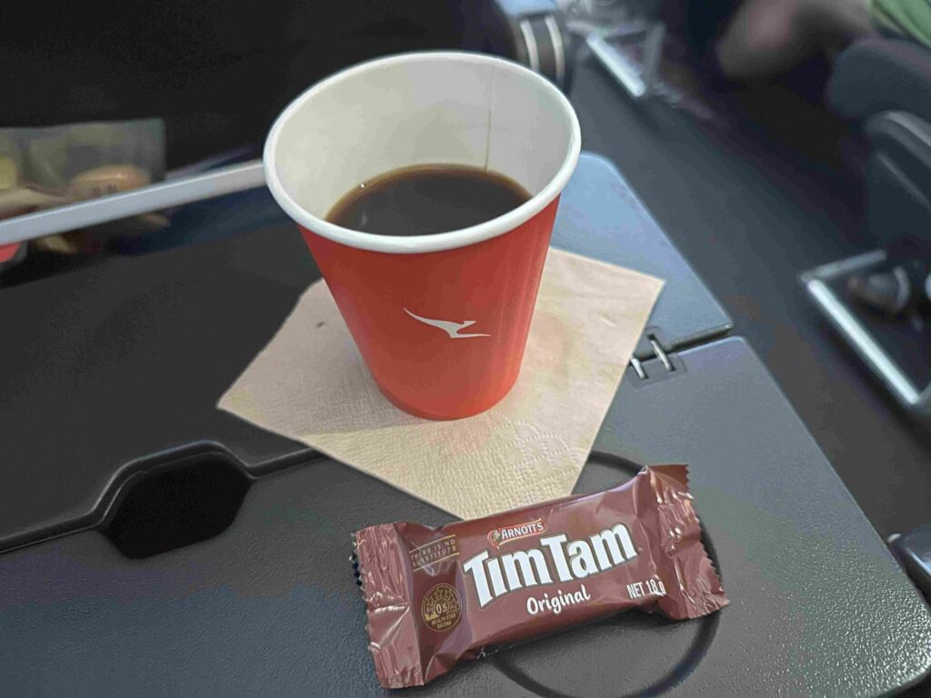 ・軽食とアルコール・ノンアルドリンクあり。 - カンタス航空機内のこと